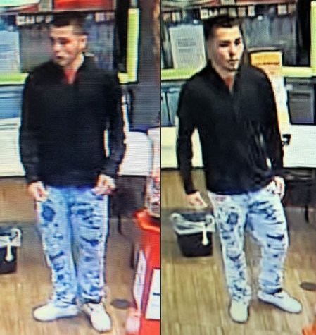 On Friday, January 15th, at about 7:30 am, the man entered into the McDonald's restaurant in Mulberry (205 Canal Street), and proceeded to go straight to the fountain machine and fill up two cups of beverage, without paying.